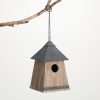 The Vintage Farmhouse Style Red Solid Wood Outdoor Birdhouse is constructed of natural wood and metal,eco-friendly and safe. The wooden planks for house body are chipped and painted by hand. The metal pieces strengthen the roof part for the birdhouse, make it very sturdy and durable, and prevent the birdhouse from being damaged from rain, wind, dropping or attacking by other animals. The birdhouse is made to be rustic and distressed in order to fit the outdoor garden environment, but is suitable as a great indoor decoration as well. Also it’s absolutely appropriate as a gift for your friend who is interested in birds or gardening. With this 6.5″L x4.25″W x8.5″H birdhouse, you are not only dressing your garden but also offering your feathered friends a cozy home. Your bird friends get house warranty in our store.If displayed outdoors, please protect this hanging sign from inclement weather. Top of the birdhouse has a ring for hanging. To hang the birdhouse, simply attach the ring hole to a desired location (tree, house, banner, etc.) with rope or hook. If you choose to use this as a functional birdhouse, it should be cleaned out once per season to make room for the next house guest. To simplify cleaning, the back panel opens with a concealed door. No tools required and clean up is a breeze. This vintage tone handcrafted distressed solid wood birdhouse featured with natural wood slatted roof will add sense of beauty and fun to any of your garden, backyard or patio, and offer a safe and sweet home for your lovely feathered friends.