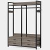 This Heavy Duty White Metal Freestanding Garment Rack with 4 Clothes Hanging Rods is perfect for clothes and shoes in cramped closets. Making small spaces more functional. The simple and chic design adds instant storage to any room. Easily transport your freestanding wardrobe. Sturdy and Durable- Heavy-duty metal frame combined with a rustic thick particle board makes it super stable and sturdy, with no wobble and collapse. Easy access to the bedroom, cloakroom, clothing store, laundry room, walk-in closet, and more. Large Storage Solution- 4 hanging rods accommodate both long and short garments. Every garment rod holds up to 50 lb. 2 open shelves ensuring you plenty of room to place clothes. And put large boxes of off-season clothes on the top for added storage.