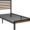 This Minimalist Storage Metal Platform Bed Black brings a sleek modern look to your bedroom. Made from metal with a black finish, it has an airy, open-frame design that leaves 14″ of under-bed space for shoes or storage boxes. This platform bed has pre-drilled holes, so you have the option to attach a headboard. The included slats are held in place with hook and loop fasteners and support the mattress of your choice. No box spring is required; a mattress and headboard are sold separately.