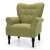 Set of 2 Retro Grey Linen Upholstered Accent Chair with Stylish Wood Legs