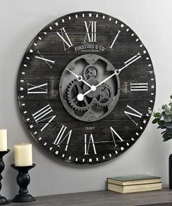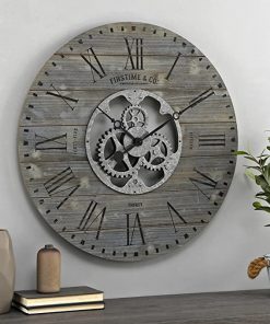 Industrial FarmHome Round Oversized Wall Clock in Rustic Grey