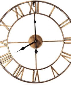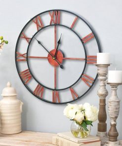 36-inch Metal Silent Wall Clock with Roman Numerals and Wooden Center