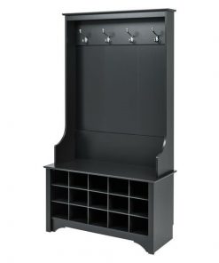 Black Entryway Hall Tree Shoe Cubbie Coat Rack