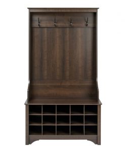 Dark Brown Entryway Hall Tree Shoe Cubbie Coat Rack