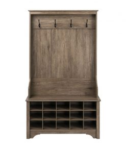Grey Entryway Hall Tree Shoe Cubbie Coat Rack