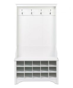 White Entryway Hall Tree Shoe Cubbie Coat Rack