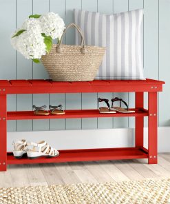 Red Wooden 2-Shelf Shoe Rack Storage Bench for Entryway or Closet