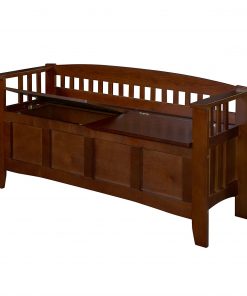 Split Seat Storage Accent Bench in Walnut Wood Finish