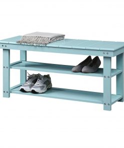 Sea Foam Aqua Blue Wood 2-Shelf Shoe Rack Storage Bench for Entryway or Closet