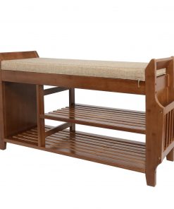 Solid Wood Entryway Shoe Rack Storage Bench with Cushioned Seat 2 Shelves and Drawer