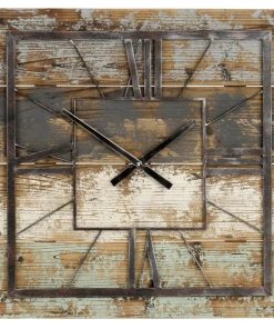 Square 27.5-inch Wood and Metal Wall Clock Industrial Style