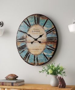 Turquoise Oversized Distressed Paris Wood Wall Clock