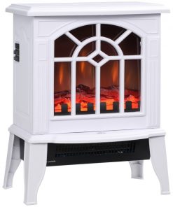 White Electric Fireplace Heater with Realistic Log Flame LED