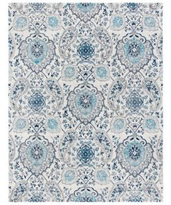 5′ x 7′ Coastal Blue Grey Damask Indoor Area Rug