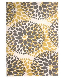 5′ x 7′ Grey Yellow Floral Woven Stain Resistant Polypropylene Area Rug