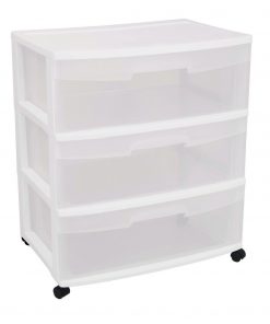 Mobile 3-Drawer Storage Cart Wardrobe Home Storage Cabinet in Clear White
