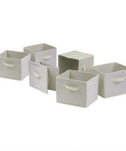 Set of 6 Foldable Fabric Storage Baskets in Beige