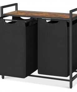 Metal Wood Industrial Modern Laundry Sorter Hamper Black/Brown