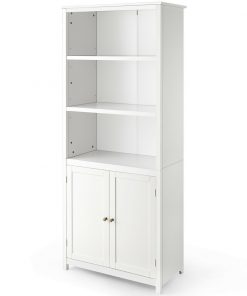 White 2-Door Bathroom Floor Cabinet with Adjustable Storage Shelf