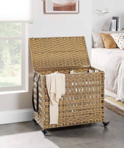 Stylish Laundry Hamper Cart with Wheels Casters and Removable Bag