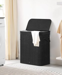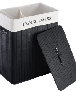 Black Bamboo 2-Bin Lights Darks Laundry Hamper with Handles
