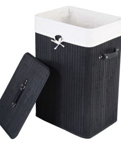 Black Bamboo Wood 26-Gal Laundry Hamper Basket w/ Removable Washable Cotton Bag