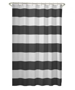 72 x 70 inch Polyester Grey White Nautical Ocean Beach Striped Shower Curtain