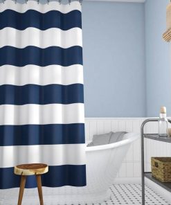 72 x 70 inch Polyester Navy Blue White Nautical Ocean Striped Shower Curtain