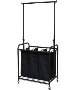 Bronze Black 3-Bag Laundry Sorter Hamper with Adjustable Clothes Hanging Bar