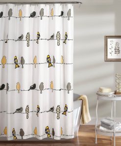 72 x 72 inch Yellow Grey Birds Floral Polyester Machine-Washable Shower Curtain