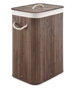 Brown Bamboo Laundry Hamper Dirty Clothes Basket with Lid and Removable Bag