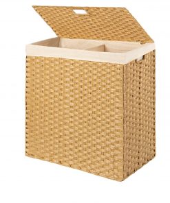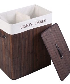 Folding 2-Bin Brown Bamboo Laundry Hamper with Handles