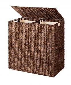 Espresso 2-Bin Handwoven Hyacinth Linen Liner Laundry Hamper w/ Handles
