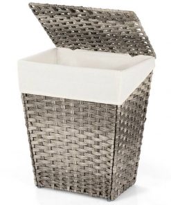 Foldable Handwoven PE Wicker Rattan Laundry Basket Clothes Hamper with Liner