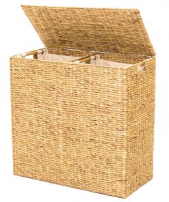 Natural 2-Bin Handwoven Hyacinth Linen Liner Laundry Hamper w/ Handles