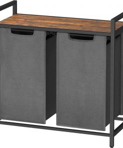 Modern Grey 2-Basket Laundry Hamper Sorter Black Frame Rustic Brown Top Shelf