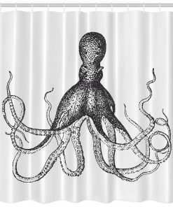 Machine Washable Black White Vintage Octopus Shower Curtain