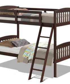 Twin over Twin Wooden Bunk Bed with Ladder in Dark Brown Finish