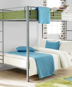 Twin over Twin Modern Metal Bunk Bed Frame in Silver Finish