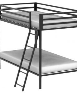 Twin over Twin Modern Metal Bunk Bed Frame in Black Finish with Ladder