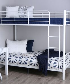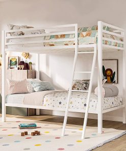 Twin over Twin Sturdy Steel Metal Bunk Bed in White Finish