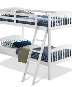 Twin over Twin Wooden Bunk Bed with Ladder in White Wood Finish