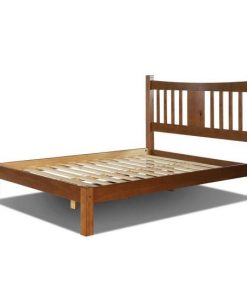 King Farmhouse Style Solid Wood Platform Bed Frame with Headboard in Walnut