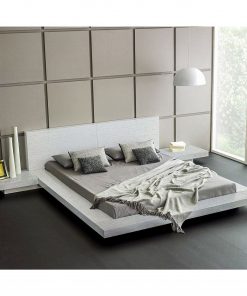 King Modern Platform Bed with Headboard and 2 Nightstand in Ash White