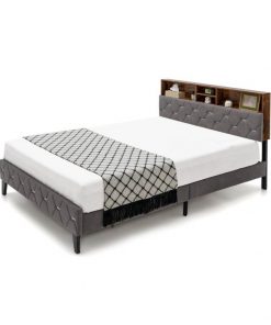Full Size Velvet Upholstered Open/Close Storage Headboard Platform Bed