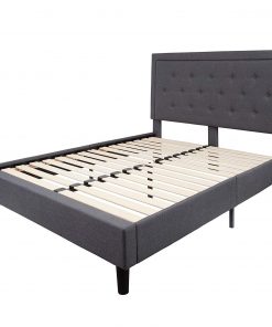 Queen size Dark Gray Fabric Upholstered Platform Bed Frame with Headboard