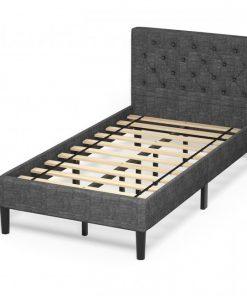Twin Size Grey Upholstered Button Tufted Headboard Platform Bed