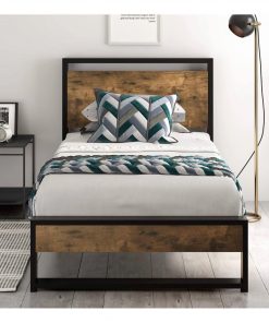 Twin size Metal Wood Platform Bed Frame with Industrial Headboard