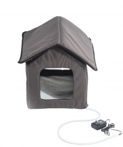 Outdoor Heated Cat House with Warm Padded Bed in Black