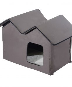 Heated Water-proof Double Wide Outdoor Cat Dog House Foldable Brown